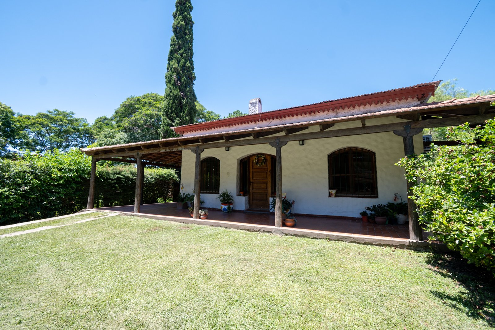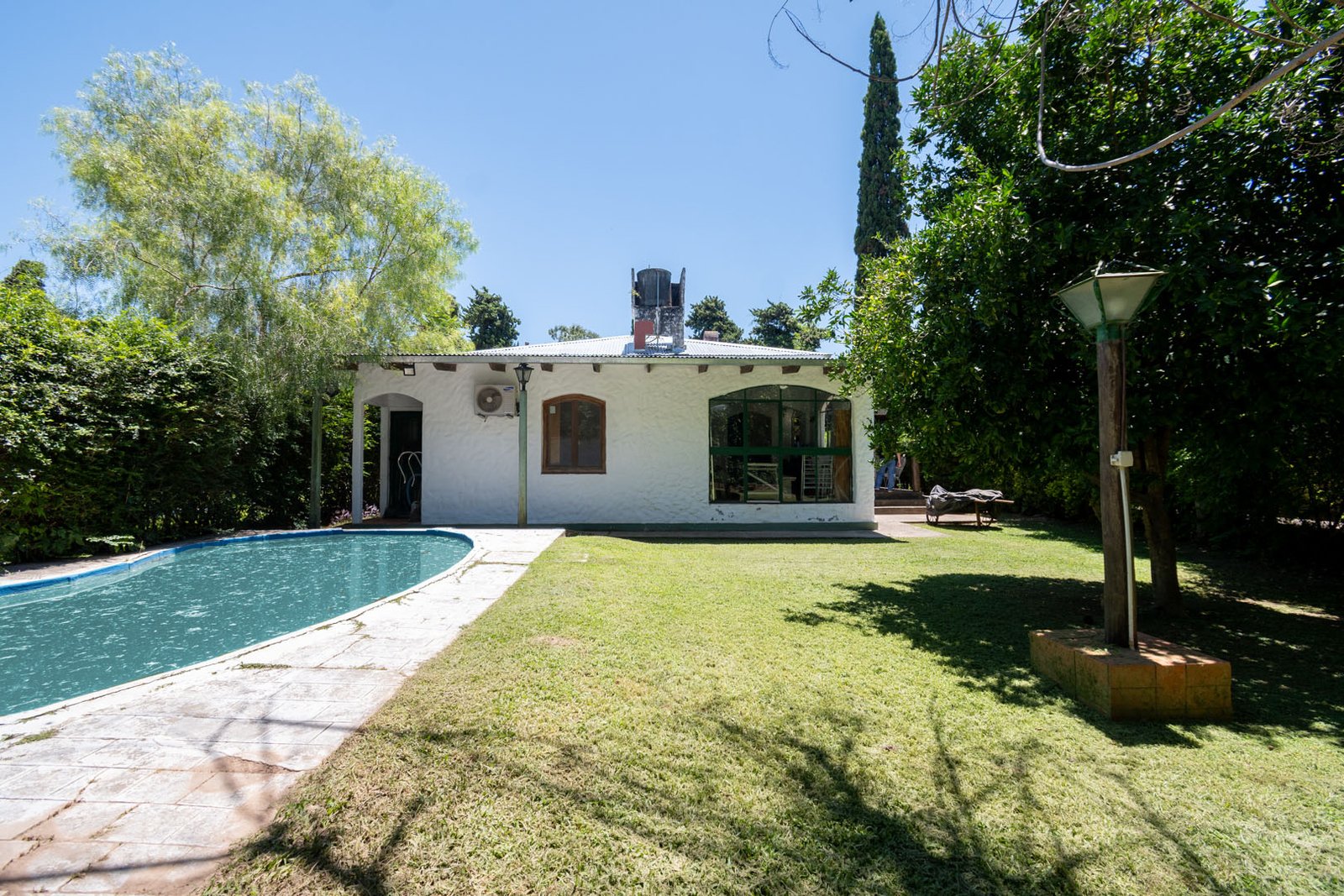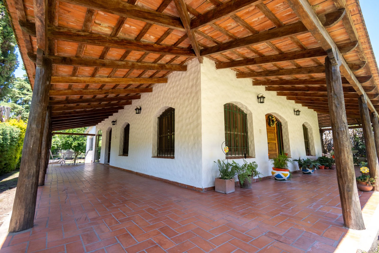 Cuenta con tres dormitorios, dos baños, quincho cerrado, amplios ambientes y una galería que rodea la casa en todos sus costados, integrando interior y exterior de manera natural. El patio ofrece una piscina, perfecta para disfrutar del aire libre y la tranquilidad del country.
