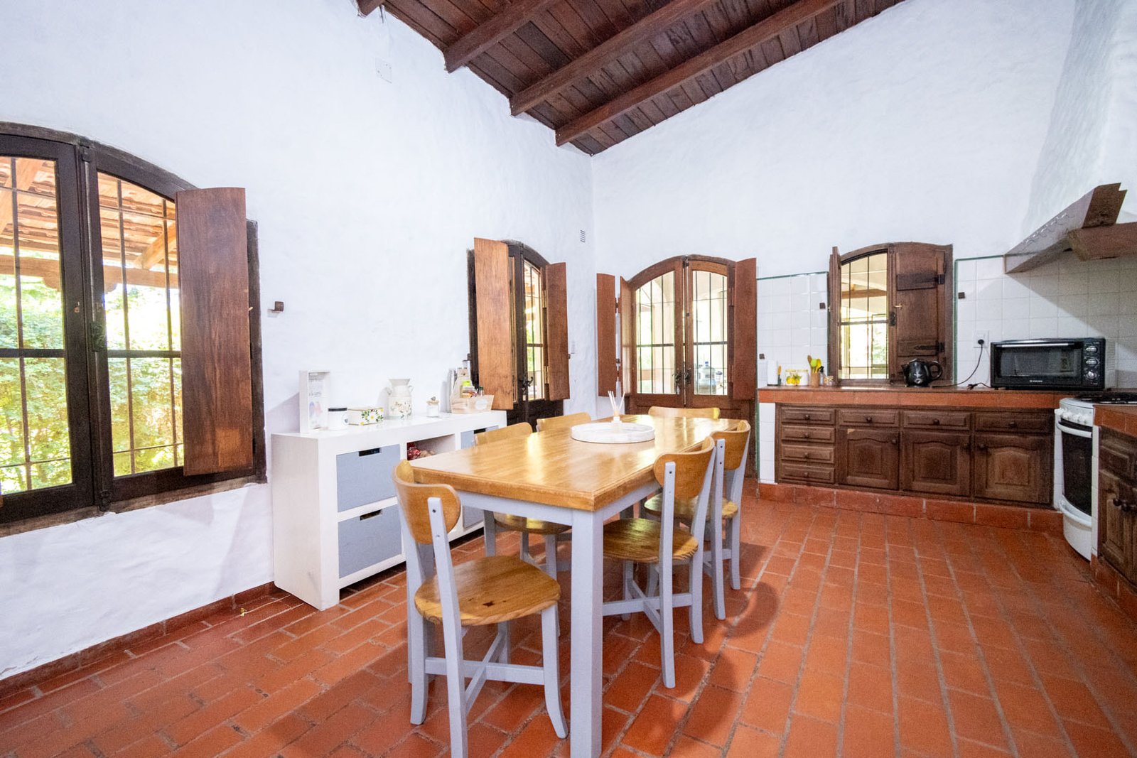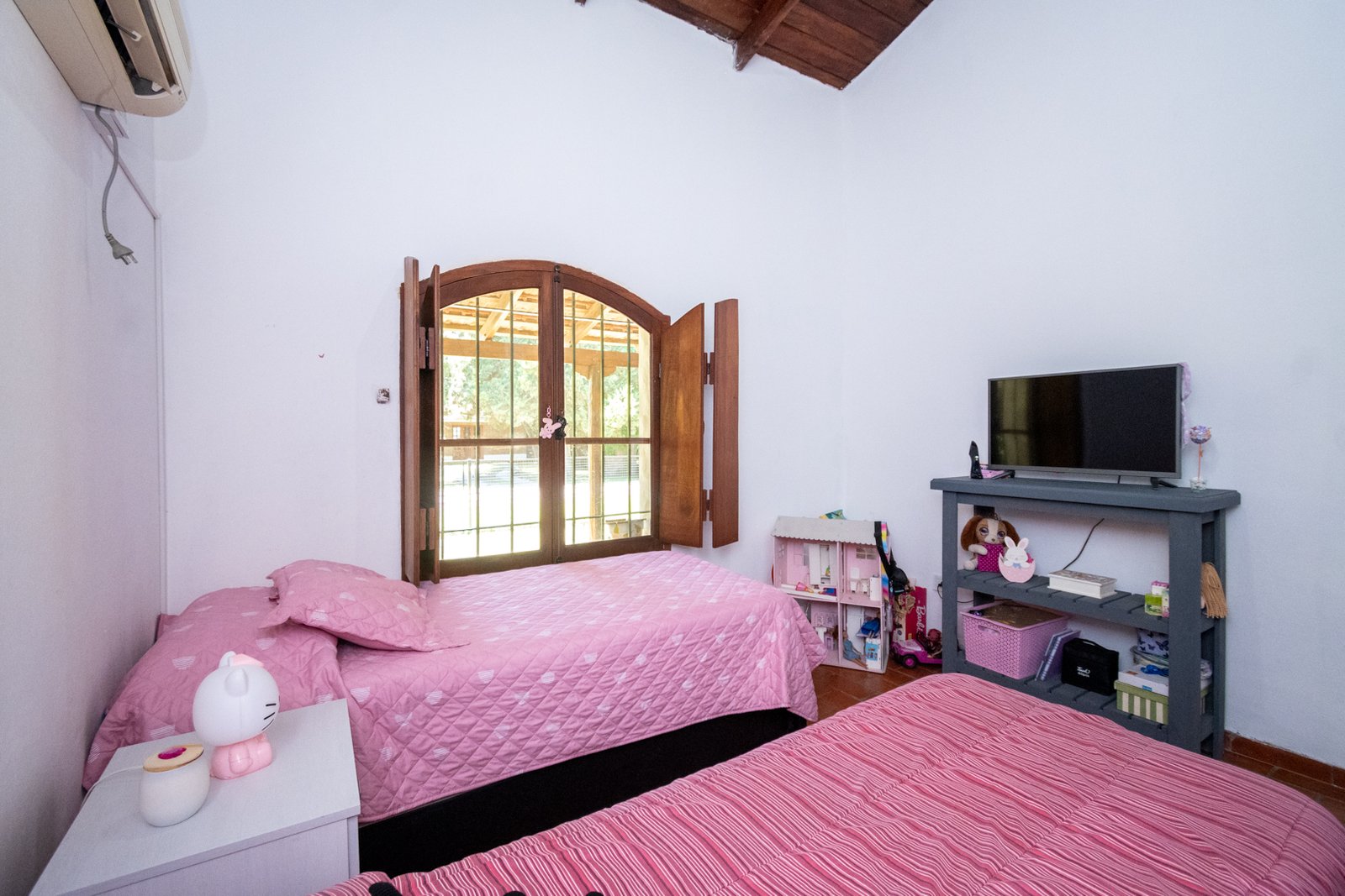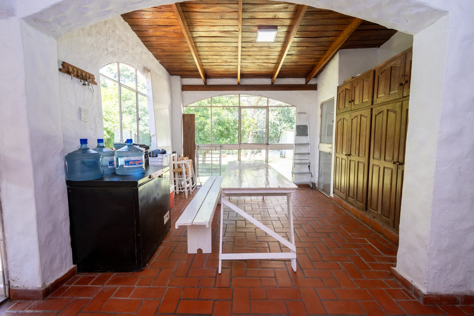 Cuenta con tres dormitorios, dos baños, quincho cerrado, amplios ambientes y una galería que rodea la casa en todos sus costados, integrando interior y exterior de manera natural. El patio ofrece una piscina, perfecta para disfrutar del aire libre y la tranquilidad del country.